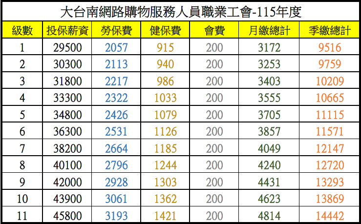 (2)自115年度健保最低投保薪資調整為29,500元。